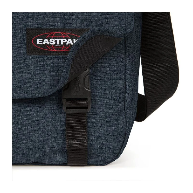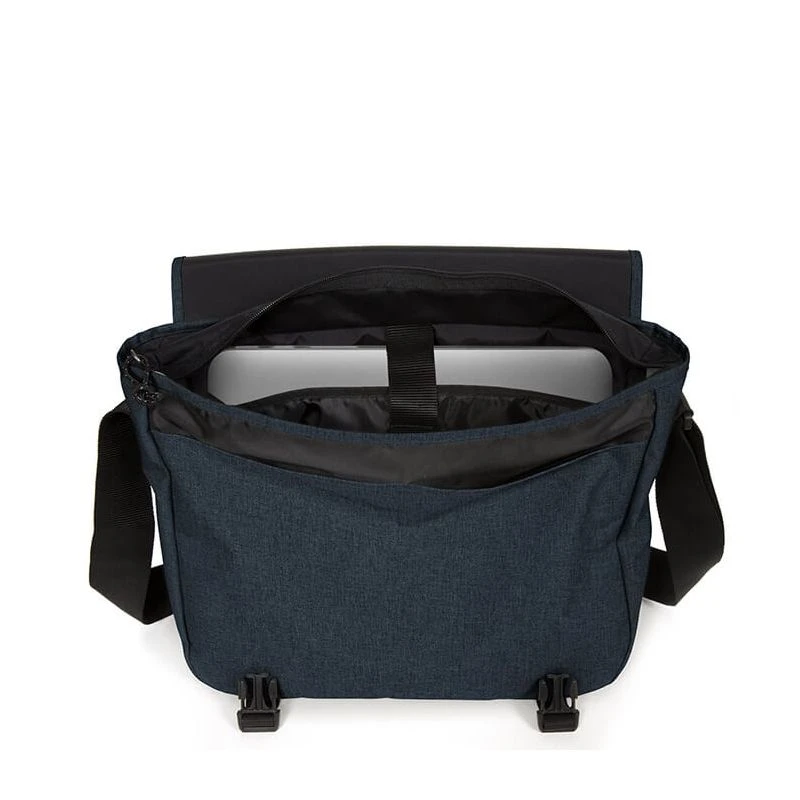 La besace Delegate + d’Eastpak pour un ordinateur de 17 pouces dans le coloris uni Triple denim : on l’emporte partout avec nous