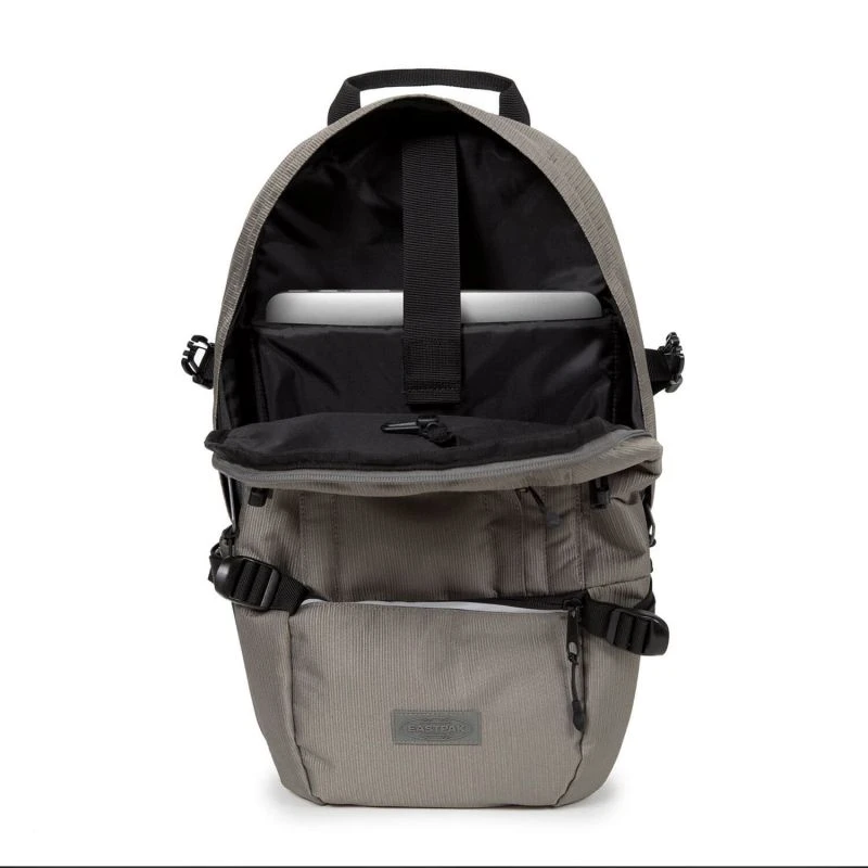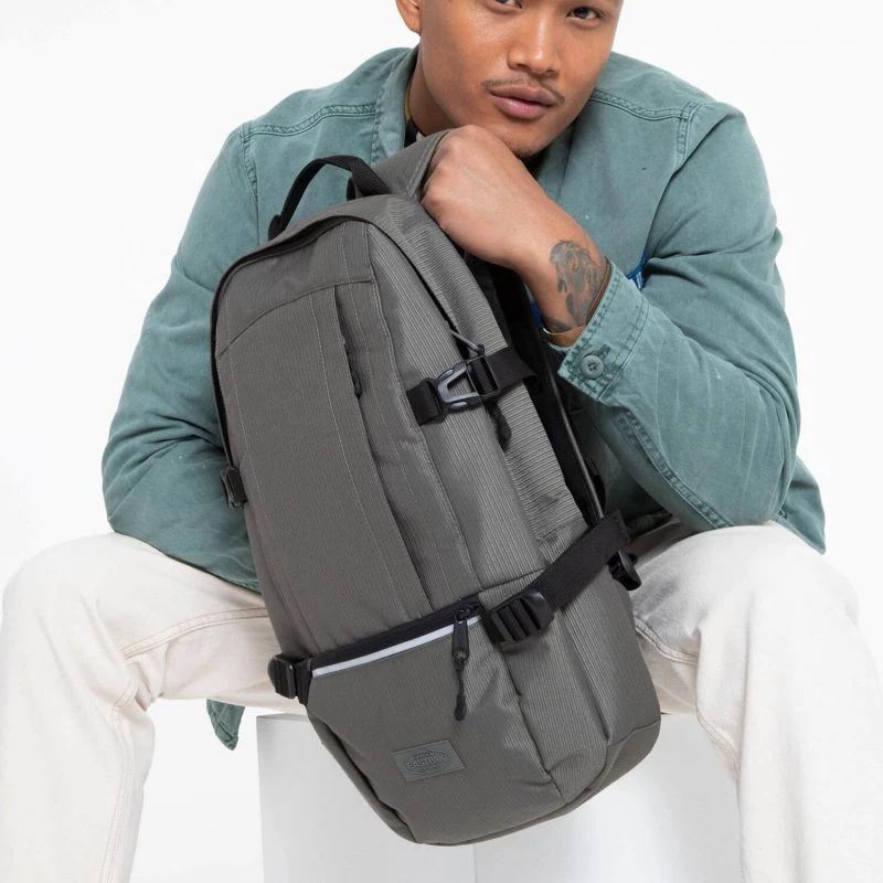Les atouts du sac à dos ordinateur d’Eastpak Floid 15 pouces 48 cm dans le coloris Reflect grey, un ton uni gris doté d’une bande réfléchissante frontale :