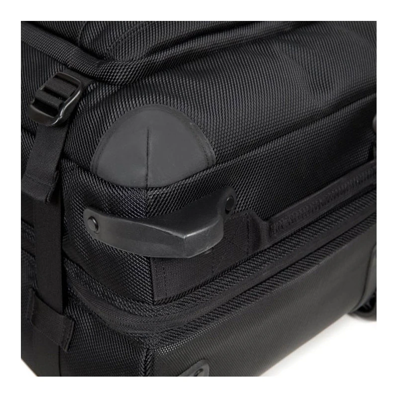 En termes de solidité et de transport, tout a été pensé pour un confort optimal. Il possède des renforts de protection au dos, des coins et un fond renforcé, assurant une pérennité dans le temps. Son transport est assuré par un système trolley composé de deux roulettes de roller ainsi qu’une poignée télescopique. On peut également le porter à la main grâce à ses deux poignées de portage rembourrées situées sur le dessus et sur le côté du bagage.